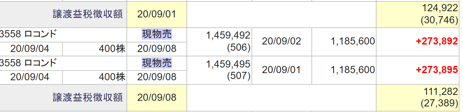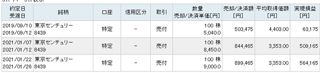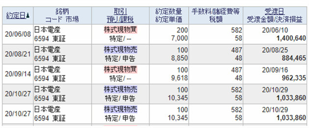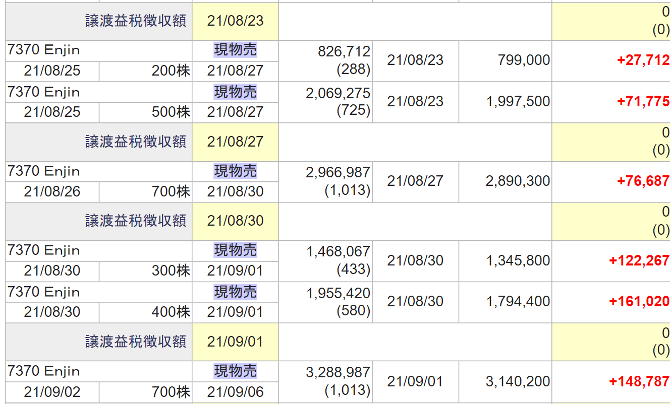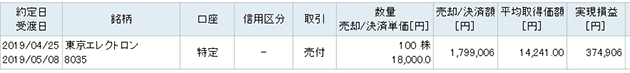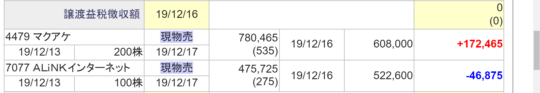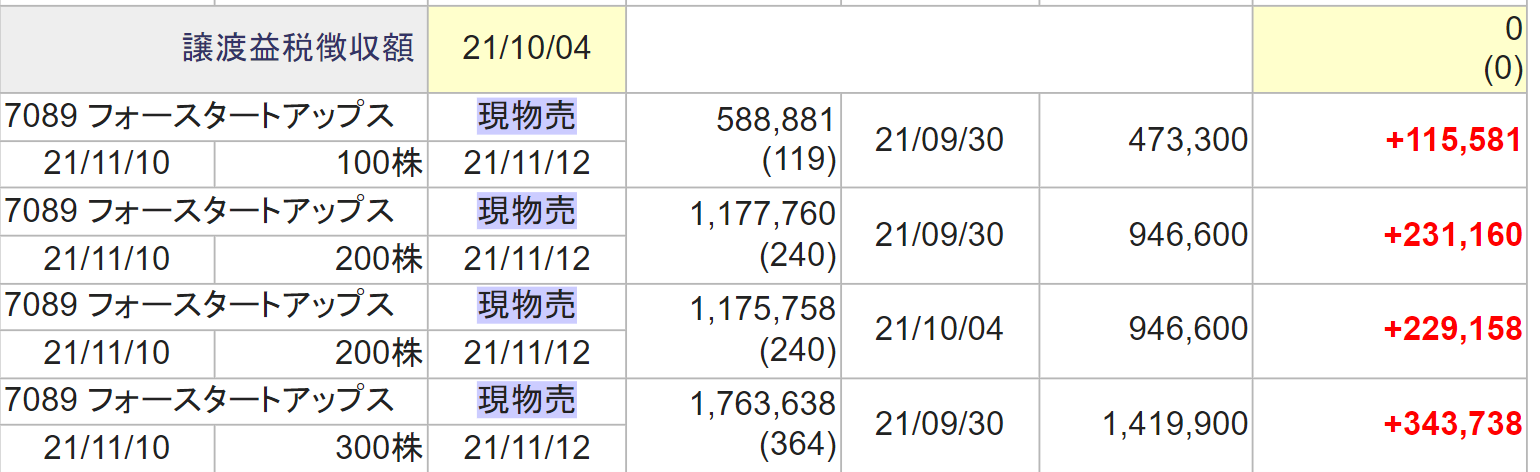 利益確定報告の一部です